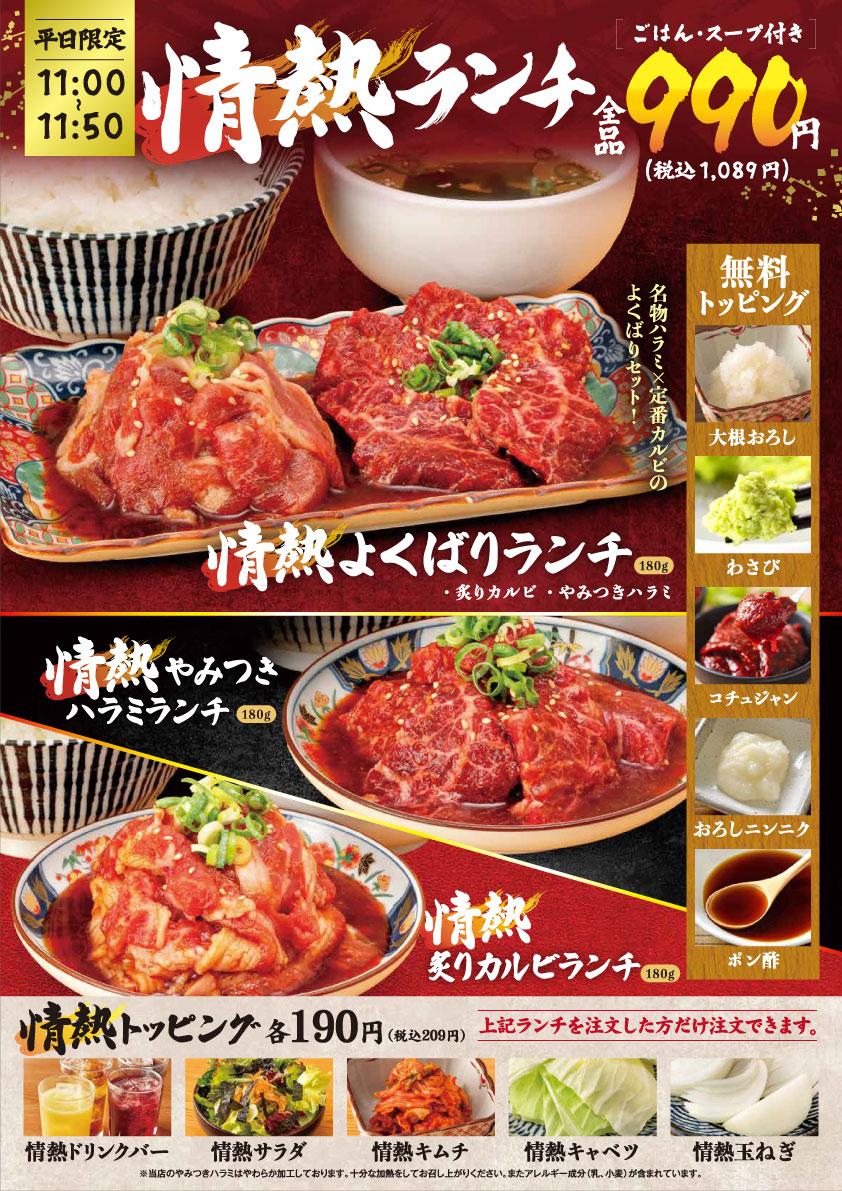 平日限定 11:00~11:50 の50分間、ボリューム満点&価格もお得な「情熱ランチ」をご提供いたします!