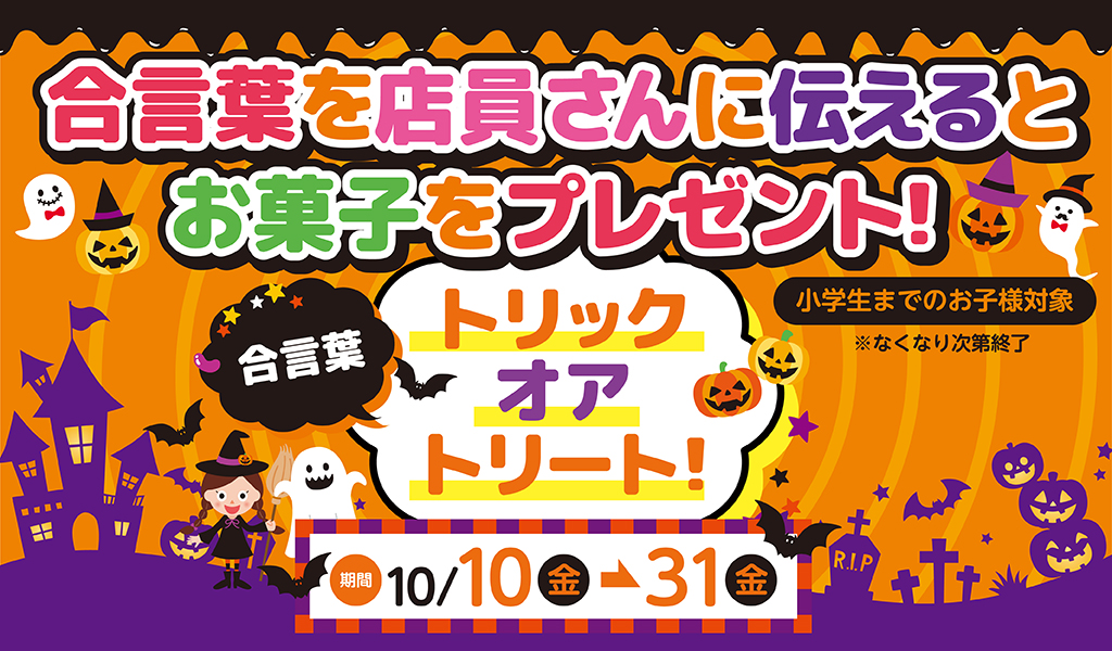 🎃✨HAPPY HALLOWEENお子様イベント開催✨🎃 2025.10.10 小学生までのお子様が対象で、合言葉「トリック オア トリート!」を店員さんに伝えると…🎁お菓子をプレゼント! ご家族でのお食事にプラスして、ちょっぴりワクワクの体験を♪ News一覧に戻る