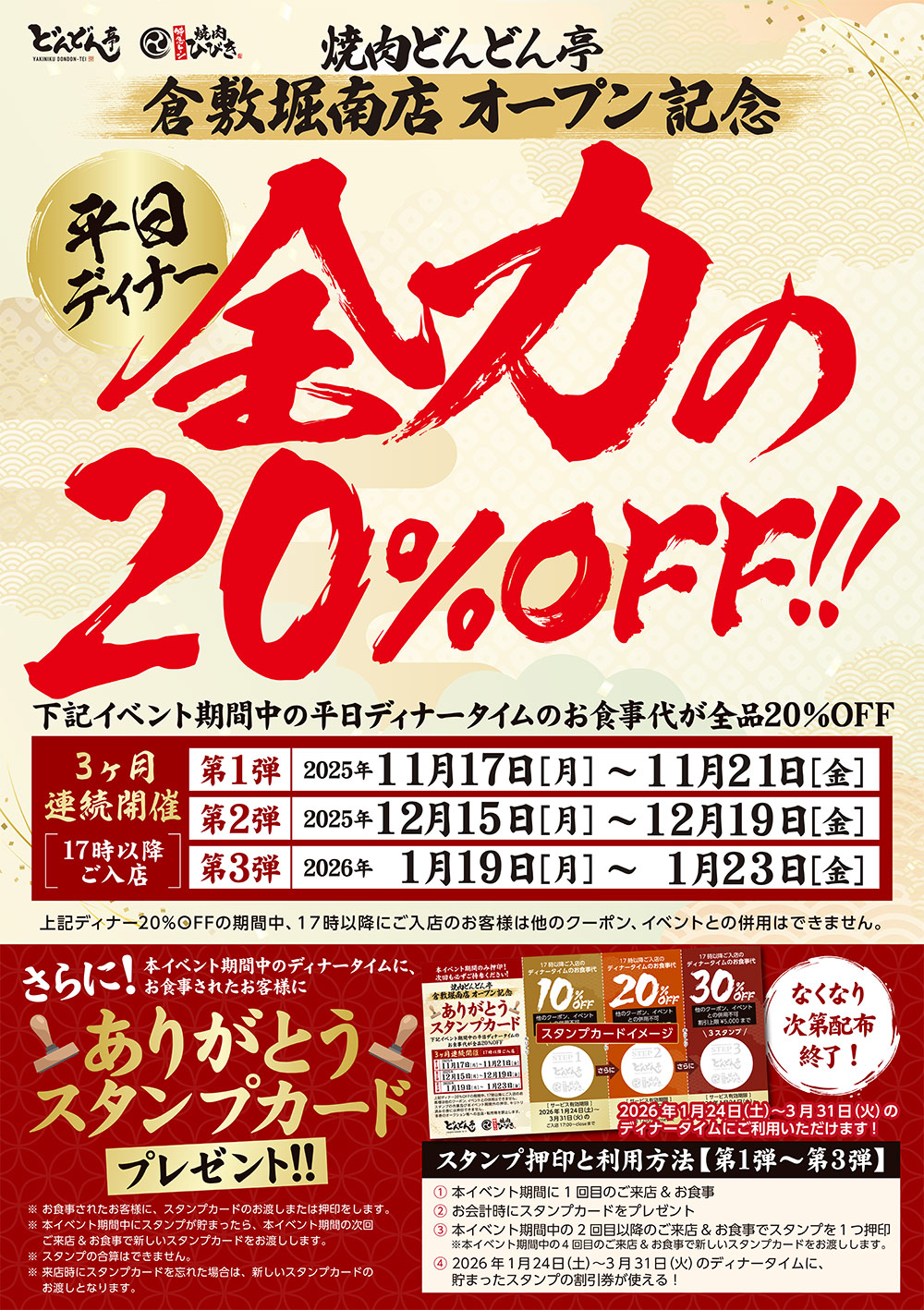 焼肉どんどん亭倉敷堀南店OPEN記念イベント第3弾開催