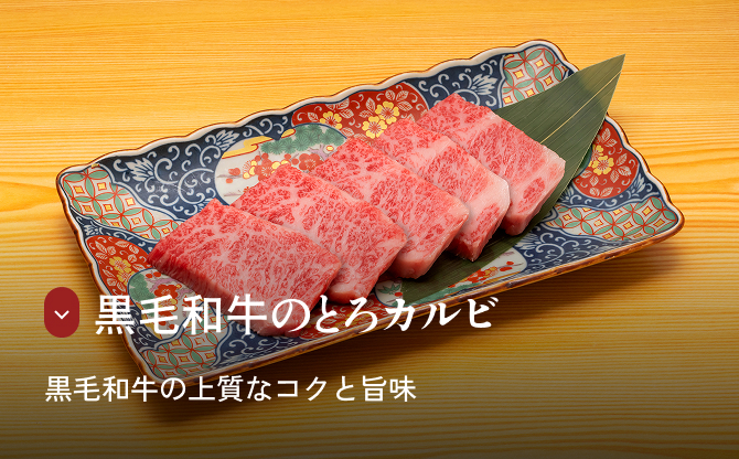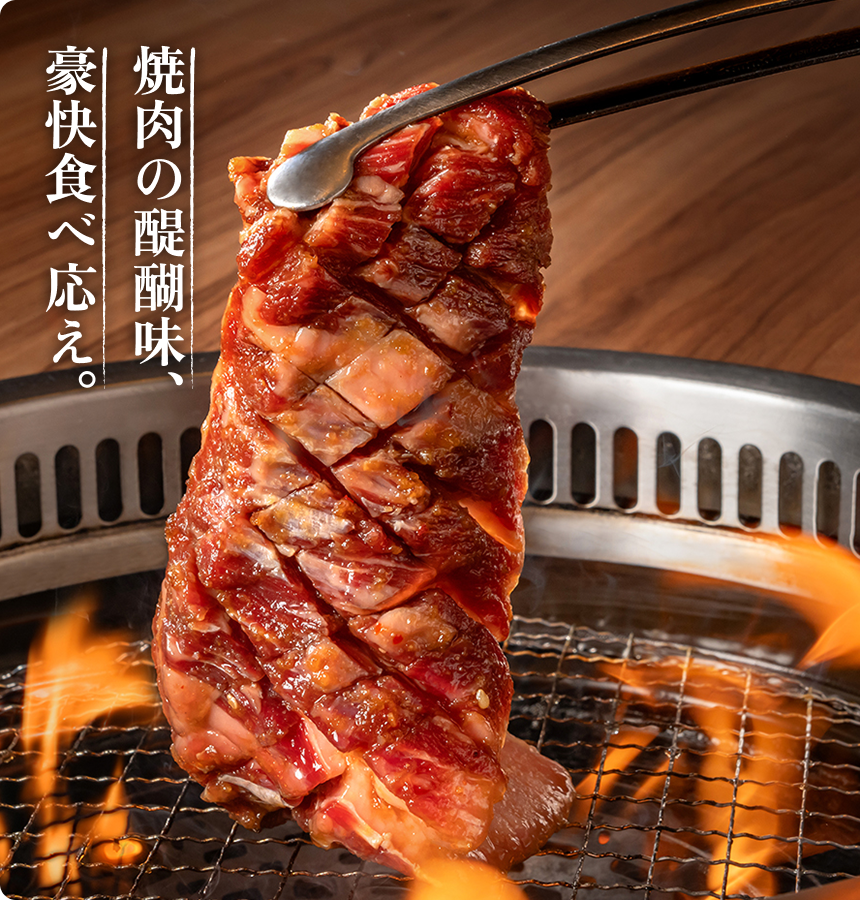食べなきゃ損!必食の看板名物 カットや質にとことんこだわり、美味しさを追求した絶品をご堪能ください。 黒毛和牛のとろカルビ 1,090円(税込1,199円) ジャストサイズ590円(税込649円) ■ 注文可能なコースはこちら 食べ放題》プレミアムコース やみつきハラミ 790円(税込869円) ■ 注文可能なコースはこちら 食べ放題》ベーシックコース 食べ放題》デラックスコース 食べ放題》プレミアムコース 国産牛感動ホルモン 790円(税込869円) ジャストサイズ450円(税込495円) ■ 注文可能なコースはこちら 食べ放題》デラックスコース 食べ放題》プレミアムコース ねぎ“どん”塩Pタン 790円(税込869円) ■ 注文可能なコースはこちら 食べ放題》デラックスコース 食べ放題》プレミアムコース ご飯に一番合うカルビ 790円(税込869円) ■ 注文可能なコースはこちら 食べ放題》デラックスコース 食べ放題》プレミアムコース 漬け込みヤミツキたれ焼肉 790円(税込869円) ■ 注文可能なコースはこちら 食べ放題》デラックスコース 食べ放題》プレミアムコース メニュートップ 六大名物 食べ放題コース 黒毛和牛 ランチ/定食 お子様メニュー 単品・ドリンクメニュー テイクアウト